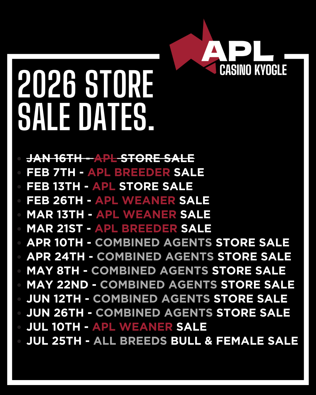 Call APL Casino on 02 6662 1451 or APL Kyogle on 02 6632 3544.
