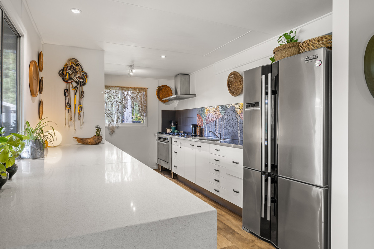 Not only is this place the ultimate in privacy but it also has exceptionally cheap running costs with not one but two fully off grid solar systems. The first system being 10kw with batteries, which includes a 27 kw solar array on the shed roof; the second system is 6.6 kw with batteries and an 8 kw solar array on the roof of the house. It also has 60,000 litres of rain water that is caught off the roof, instant gas hot water, stove and oven, ceasar stone bench tops and a brand new air con system that will cool you for days. With power costs only ever going up this is the perfect way to control some of your expenses.